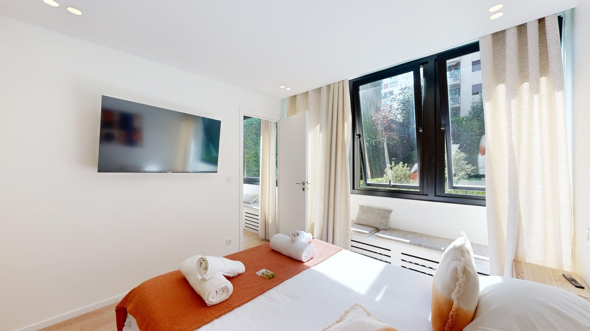 We charge 100% of the total amount on reservation to block the apartment in the calendar.
