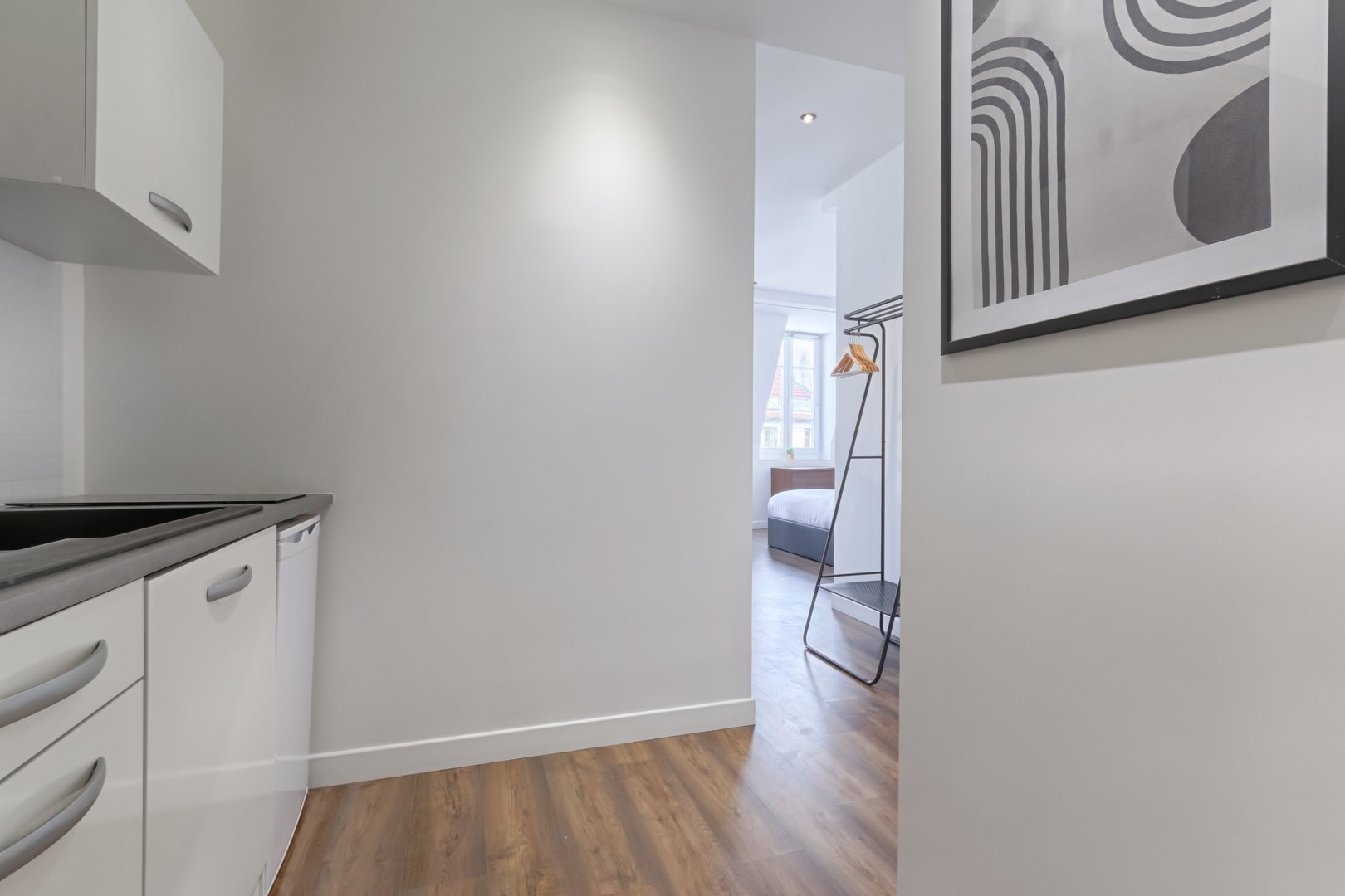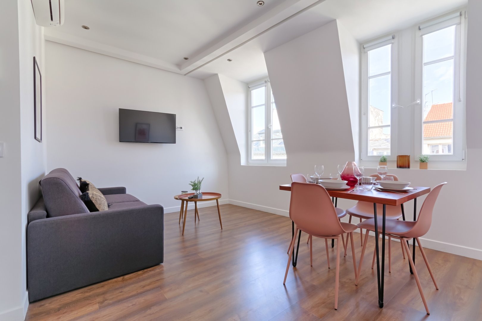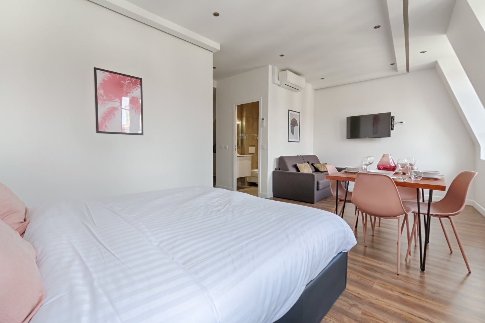 Enjoy a comfortable stay in this furnished studio, designed to offer you a pleasant, functional and relaxing setting in a lively district of the capital: Living room: A warm, well-thought-out space, equipped with a double sofa bed, a double bed, a pretty flat-screen TV, a colorful coffee table and a convivial dining table, perfect for meals or moments of relaxation in a cosy atmosphere. Kitchen: A small, functional, fully-equipped kitchen with hob, microwave, small fridge and Nespresso machine. Coffee capsules, sugar and tea are also available to enhance your gourmet moments. Bathroom: A modern, well-appointed bathroom with shower, mirror, hairdryer and welcome kit with shower gel and shampoo. Everything has been designed to meet your daily needs with simplicity and comfort. Toilet: One toilet in the bathroom. Additional amenities: The studio also features an iron, an air conditioning, Wi-Fi connection included, and sheets and towels prepared for each guest. Everything is designed to make you feel immediately at home. Additional information: The apartment is located on the 5th floor of a secure building without elevator, in a lively Parisian neighborhood appreciated for its restaurants, local ambiance and nightlife. Rue Saint-Denis, where the apartment is located, was once a hotbed of Parisian prostitution. There are still a few prostitutes in the area, and you may notice vestiges of this history. Today, the area is best known for its lively atmosphere, while remaining a safe neighborhood.