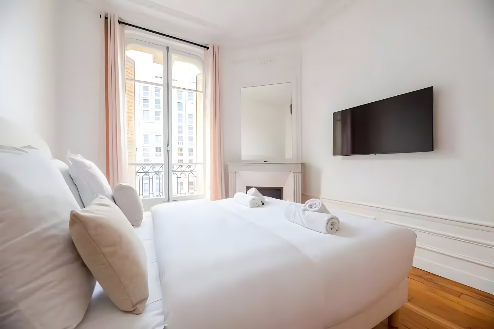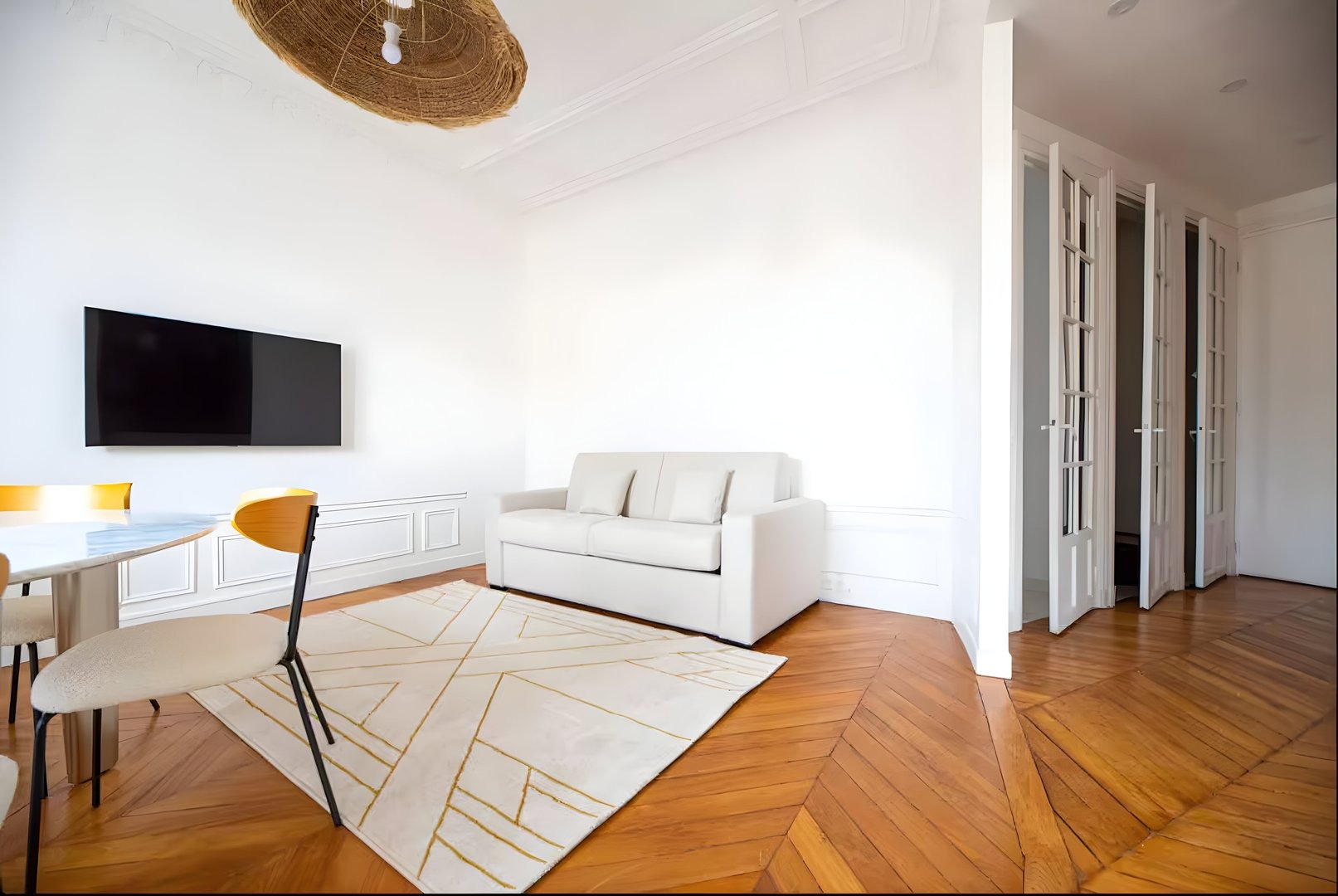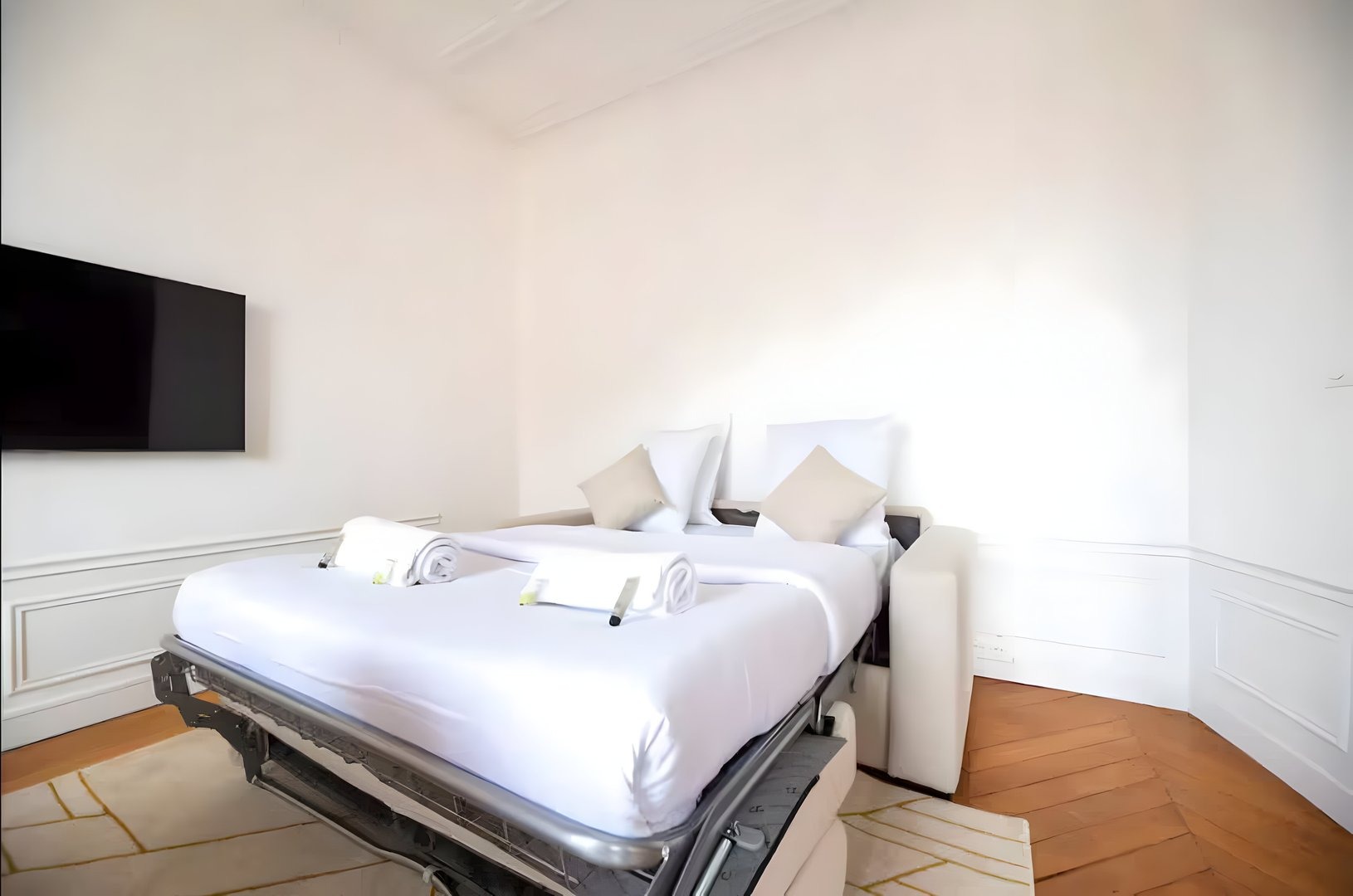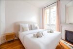 Enjoy a comfortable stay in this well-appointed apartment equipped for your needs: Large living area: A cosy space with two sofas and a piano, ideal for relaxing. There’s also a dining area with a large dining table and TV. A comfortable double sofa bed is also set up in a corner of the room for added comfort. Kitchen: Modern kitchen with hob, microwave oven and Nespresso machine. Bedrooms: Two cosy bedrooms with comfortable double beds and quality bed linen. Bathroom: A modern bathroom with shower, shower gel, shampoo and hairdryer. Toilet: One toilet separate from the bathroom. Additional amenities: Washing machine, dishwasher, iron, Wi-Fi included, bed linen and towels provided for each guest. Additional information: The apartment is located on the 5th floor of a secure building with a typical old Parisian elevator, which is functional but small.