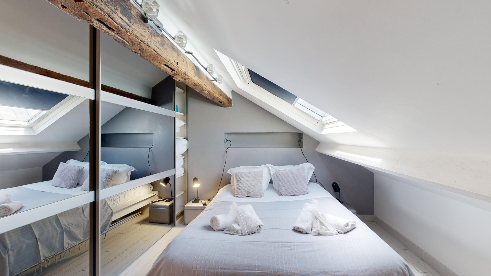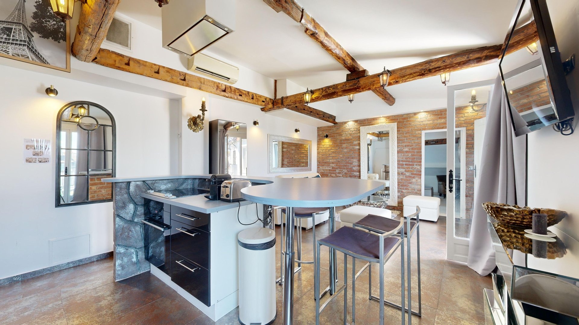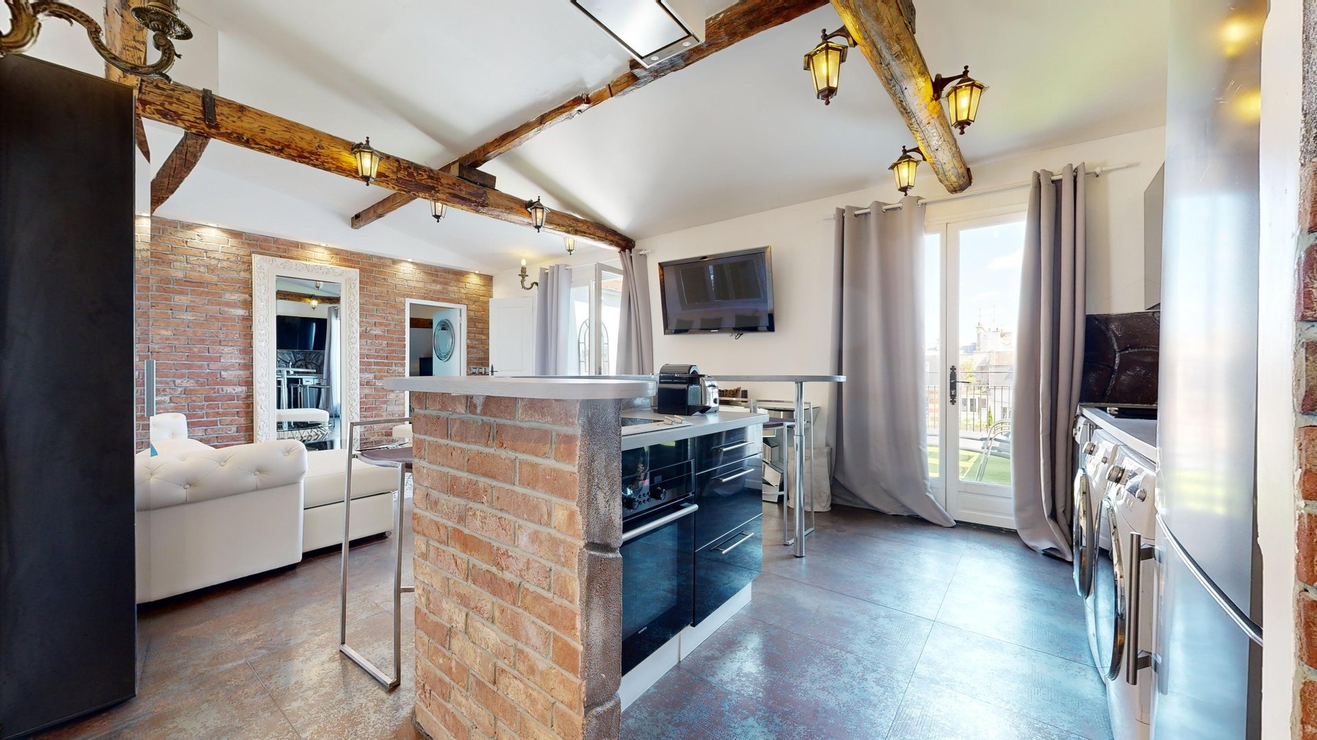 Enjoy a comfortable stay in this well-appointed apartment equipped for your needs: Living room: An inviting space with a double sofa bed, TV and dining table for convivial moments. Kitchen: Modern, open-plan kitchen with hob, oven, microwave, dishwasher and Nespresso machine. Coffee capsules, sugar and tea are also available to enhance your gourmet moments. Master bedroom: Elegant room with large wardrobe, TV, double bed and en-suite bathroom with bath and shower. Second bedroom: Attractive room with double bed, retractable bunk bed, large TV screen and en-suite bathroom for added privacy. Bathroom: Two modern bathrooms, each with a welcome kit including shower gel and shampoo, as well as a hairdryer. Toilets: Two toilets are available in the accommodation. Terrace: Large, convivial outdoor space of 21m². Additional amenities: Washing machine, dishwasher, tumble dryer, freezer, iron, Wi-Fi included, sheets and towels provided for each guest. Everything is designed to make you feel at home. Additional information: The apartment is located on the 4th floor in a secure building without elevator.