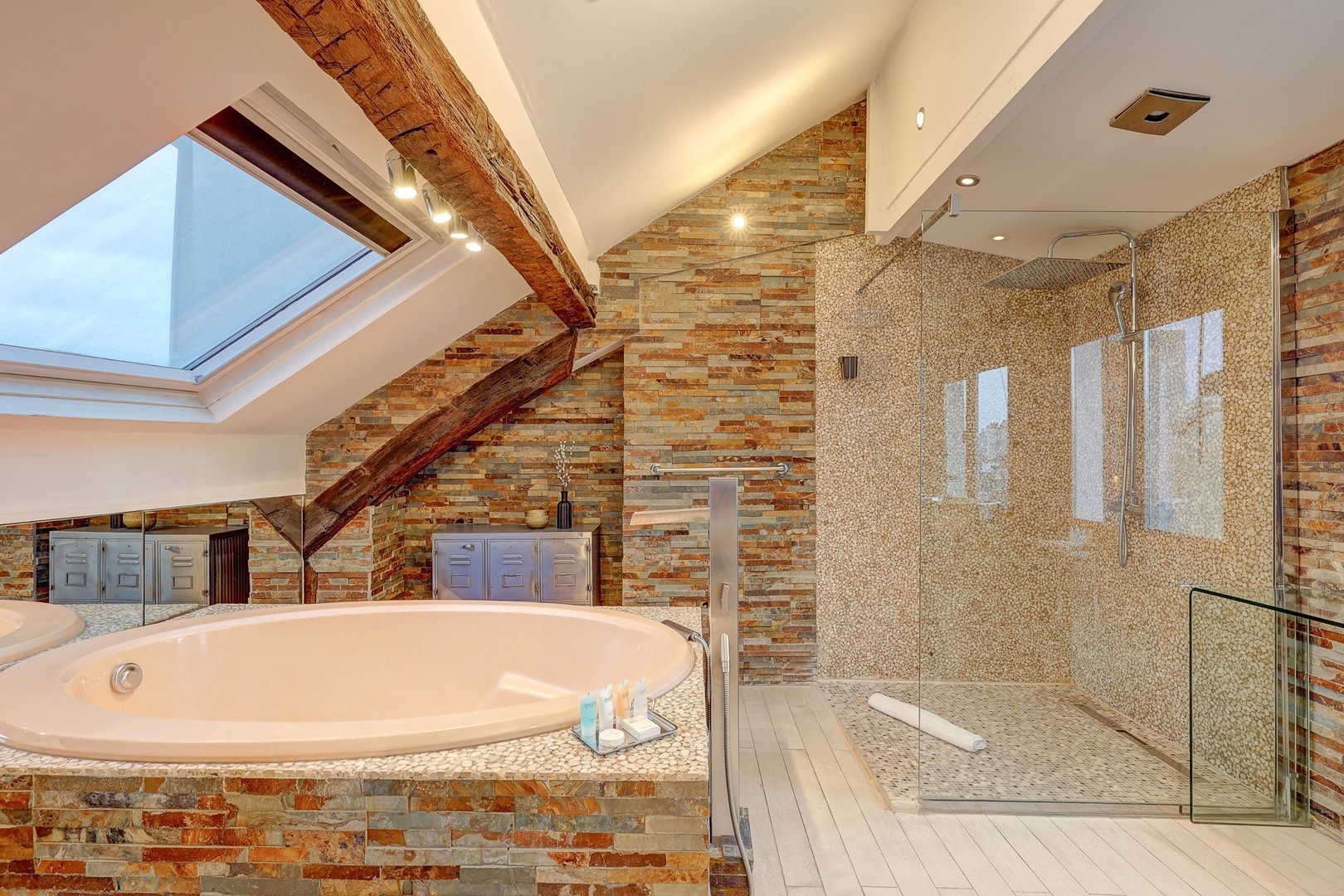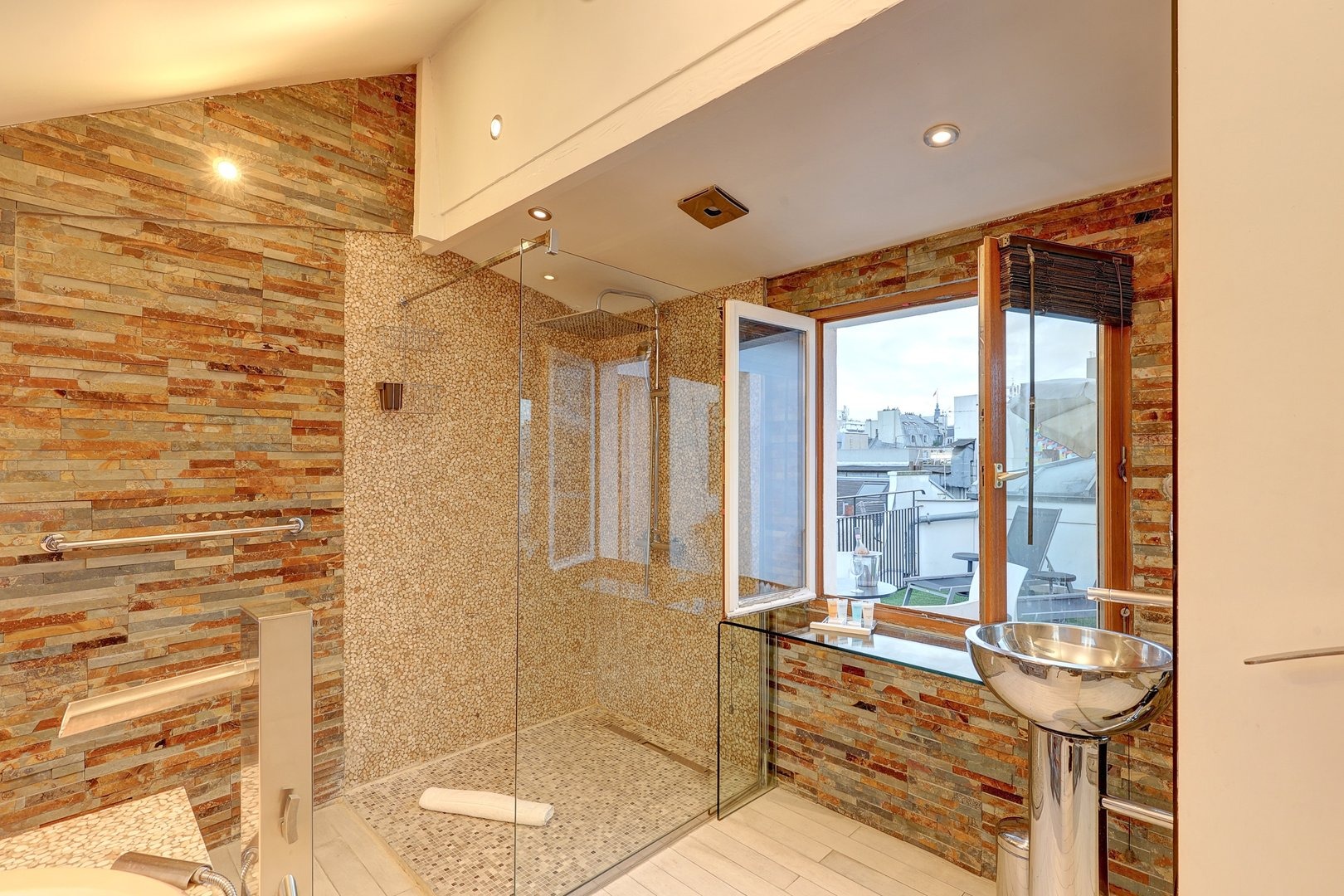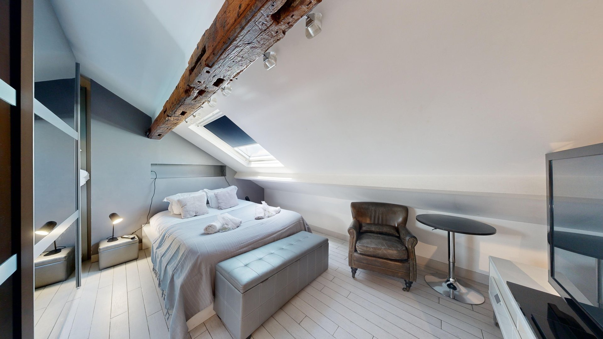 Enjoy a comfortable stay in this well-appointed apartment equipped for your needs: Living room: An inviting space with a double sofa bed, TV and dining table for convivial moments. Kitchen: Modern, open-plan kitchen with hob, oven, microwave, dishwasher and Nespresso machine. Coffee capsules, sugar and tea are also available to enhance your gourmet moments. Master bedroom: Elegant room with large wardrobe, TV, double bed and en-suite bathroom with bath and shower. Second bedroom: Attractive room with double bed, retractable bunk bed, large TV screen and en-suite bathroom for added privacy. Bathroom: Two modern bathrooms, each with a welcome kit including shower gel and shampoo, as well as a hairdryer. Toilets: Two toilets are available in the accommodation. Terrace: Large, convivial outdoor space of 21m². Additional amenities: Washing machine, dishwasher, tumble dryer, freezer, iron, Wi-Fi included, sheets and towels provided for each guest. Everything is designed to make you feel at home. Additional information: The apartment is located on the 4th floor in a secure building without elevator.